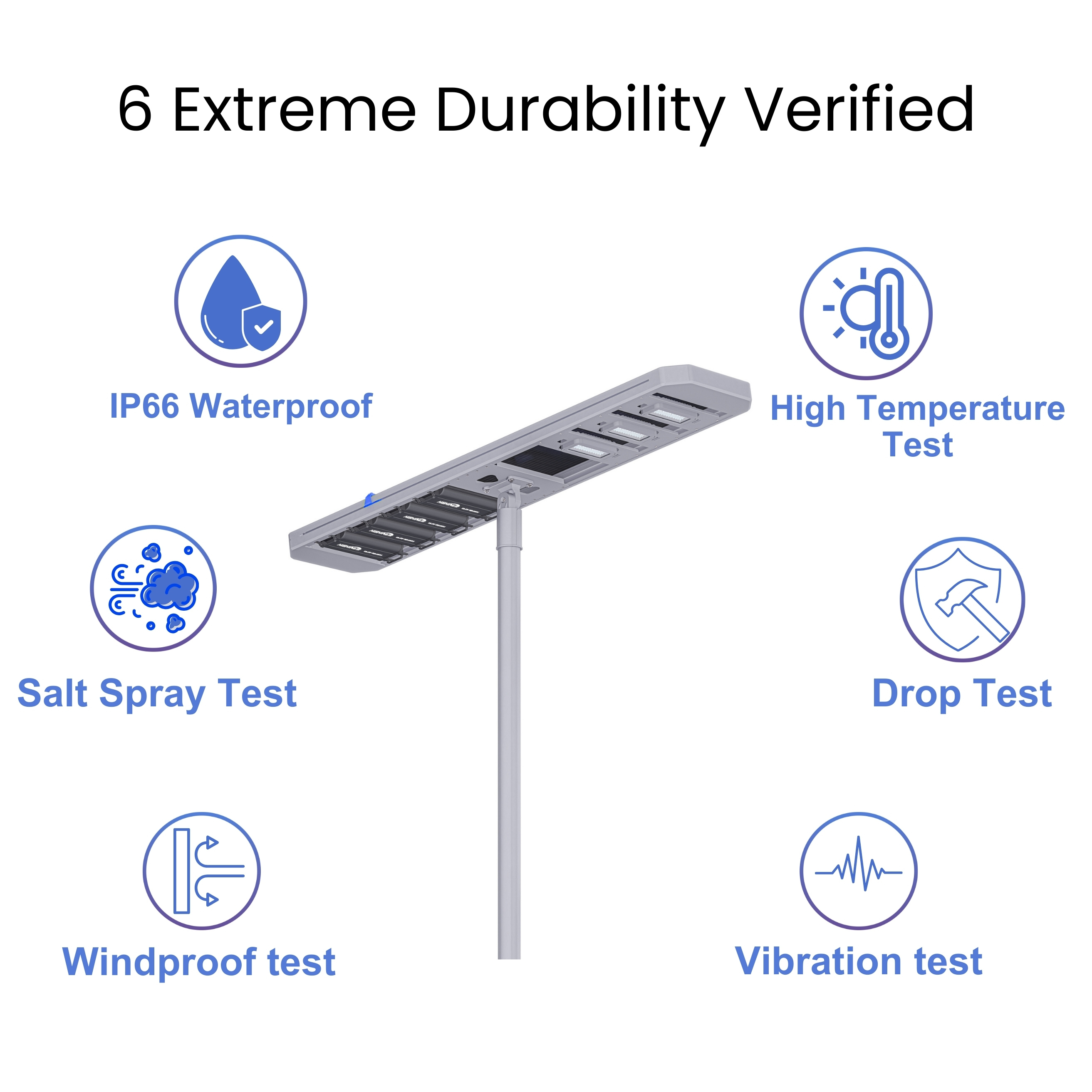 We use brand-new LiFePO4 batteries (EV-grade) with 2000+ charge cycles, providing a lifespan of 8–10 years. The entire system is backed by a 10-Year Warranty, ensuring a secure ROI for government and commercial projects.